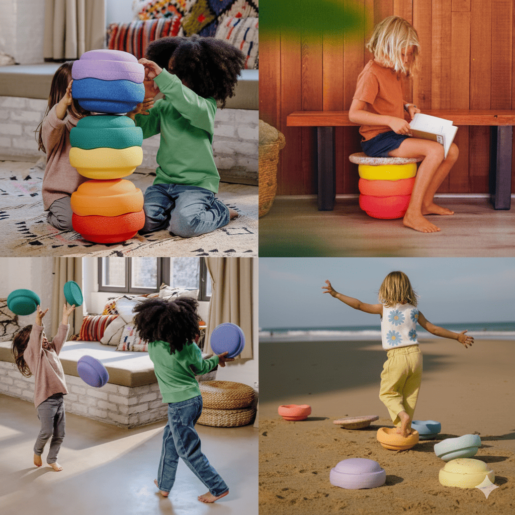 - 🎯 Jeu actif inspiré Montessori : des possibilités infinies pour sauter, s’équilibrer et créer des parcours.